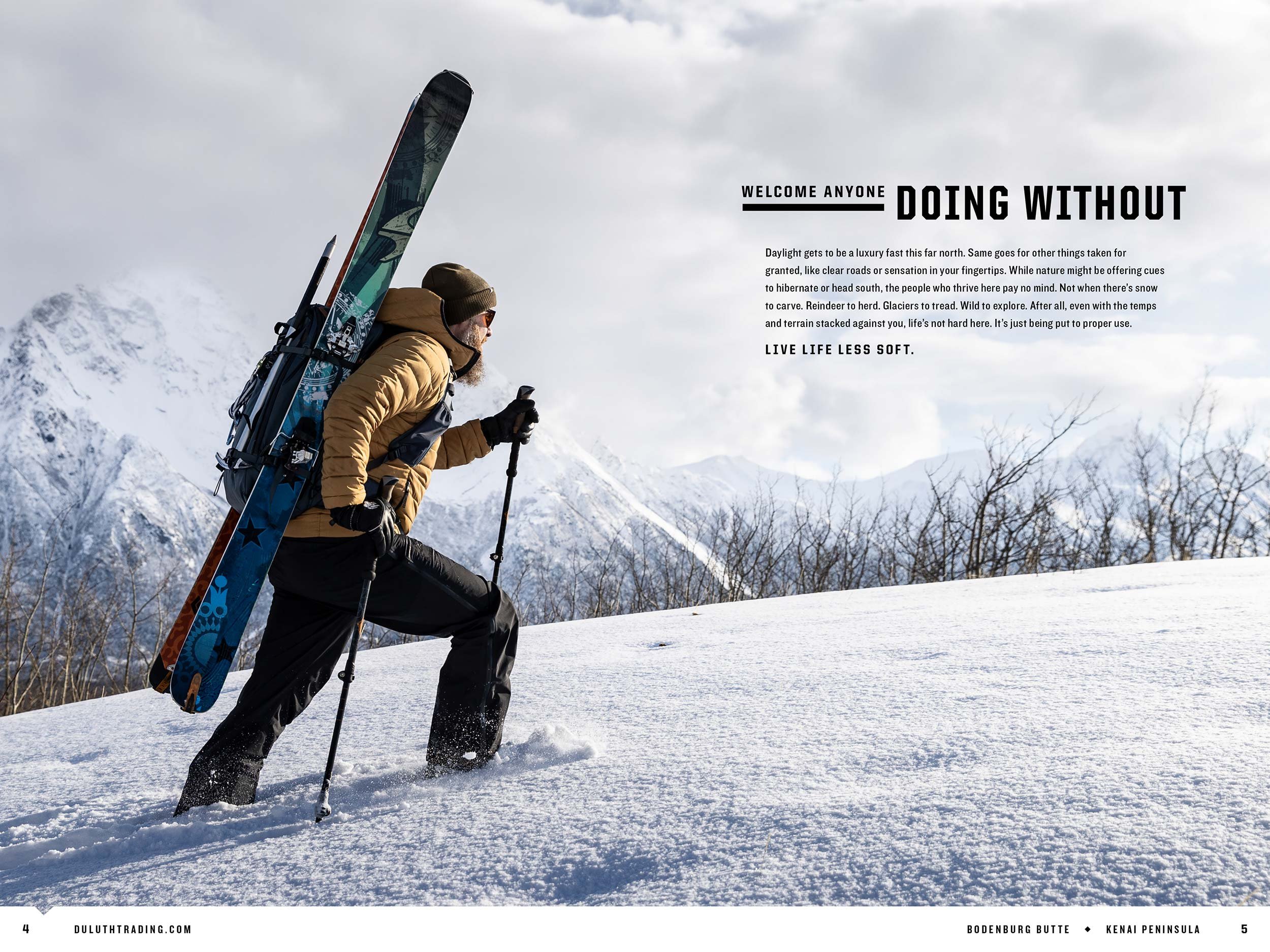 Alaskan Hardgear’s bread and butter is their 48-page mailed catalog, showcasing the brand’s finest offerings alongside frontier tales.