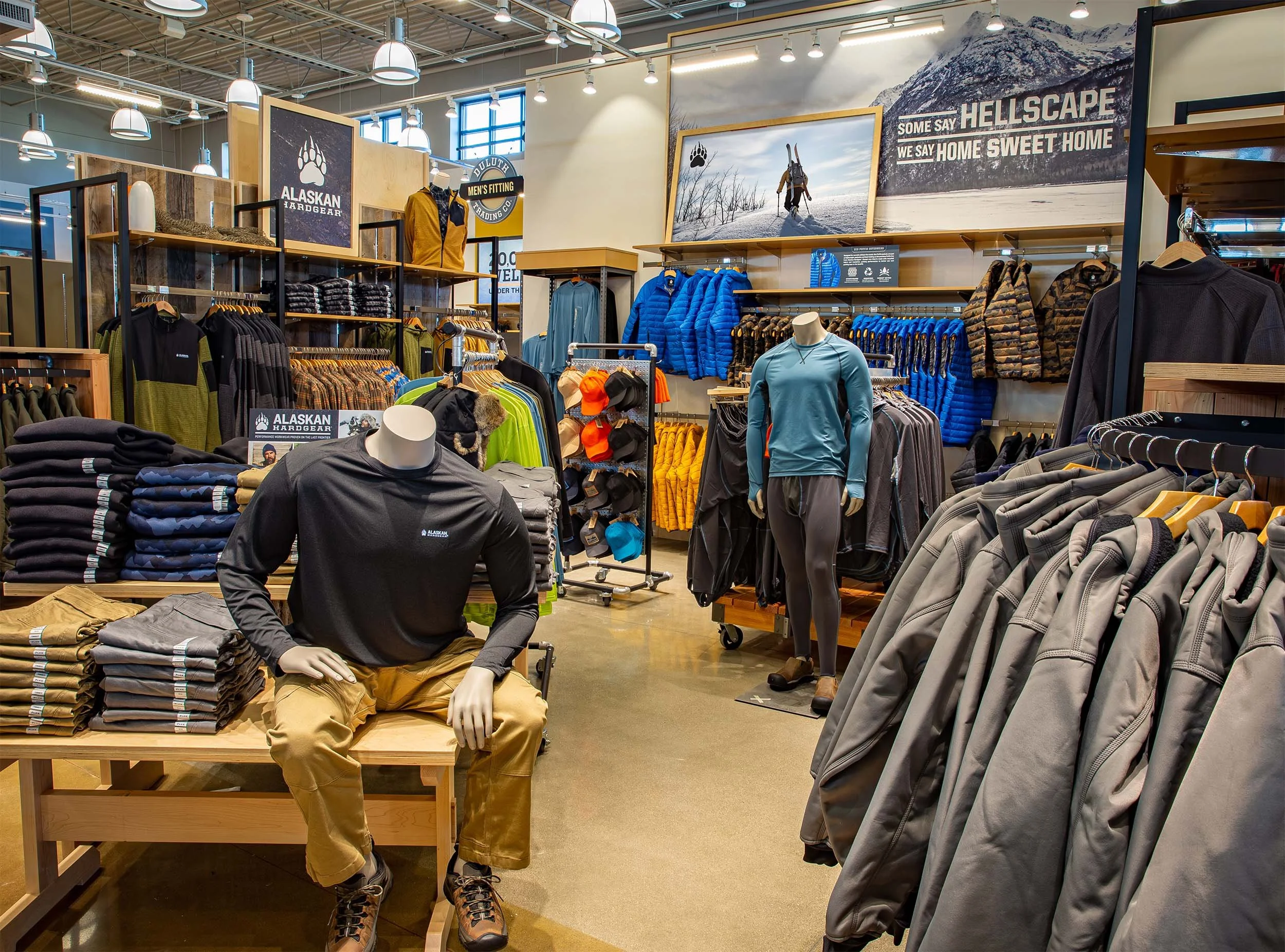 Retail posters and signage brought headlines and imagery into the Alaskan Hardgear store-within-a-store at Duluth Trading locations.
