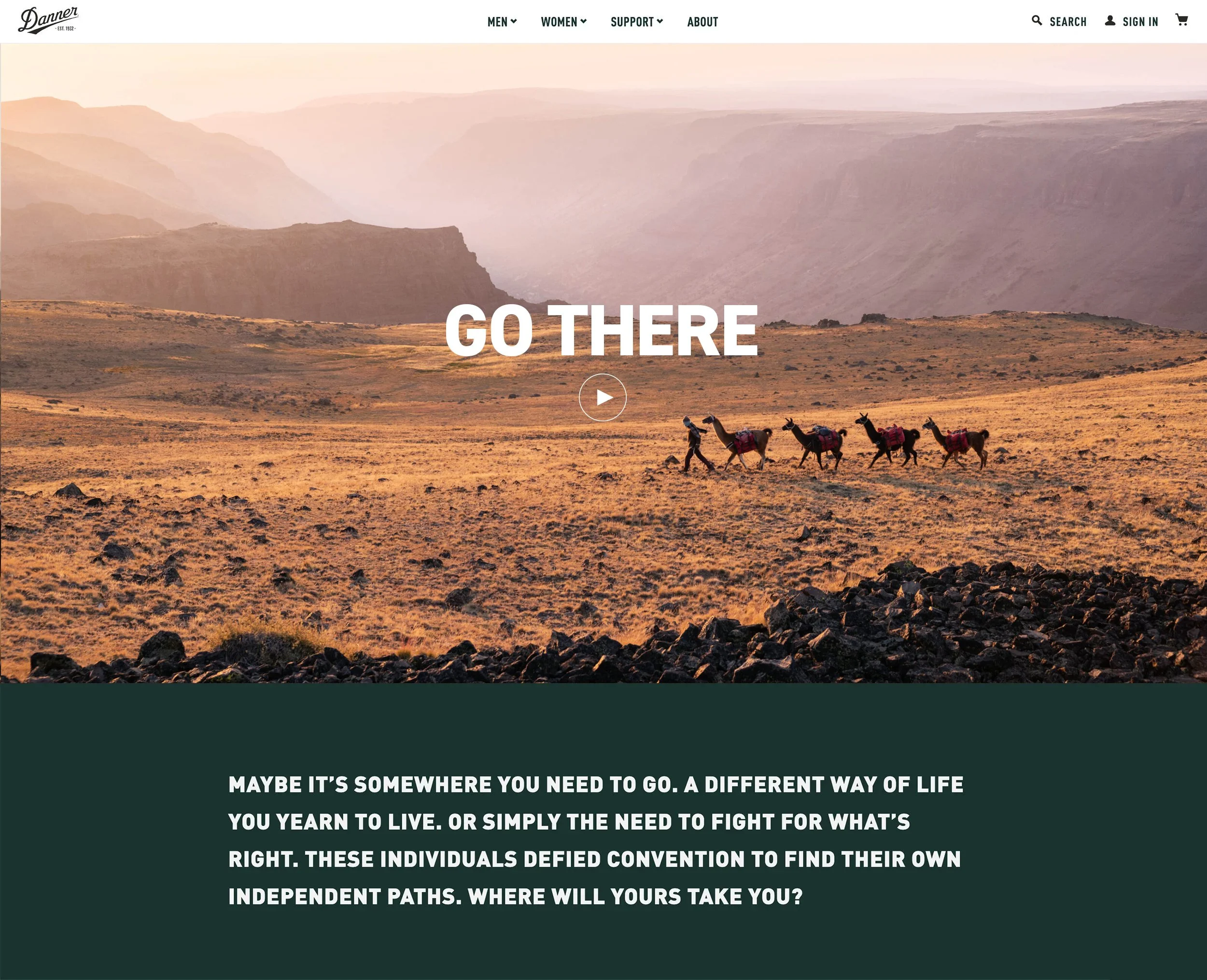 The Go There landing page features the longform anthem, and links to individual films and bios of all three subjects.